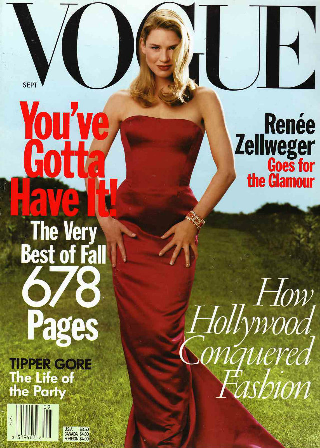 1998 marks the first year that Anna Wintour put a celebrity on the cover of the September issue. Renee Zellweger in that stunning red dress began the iconic editor’s habit of having A-listers on the cover. Between 2004 and 2011 not one supermodel was featured on the September issue of American Vogue.